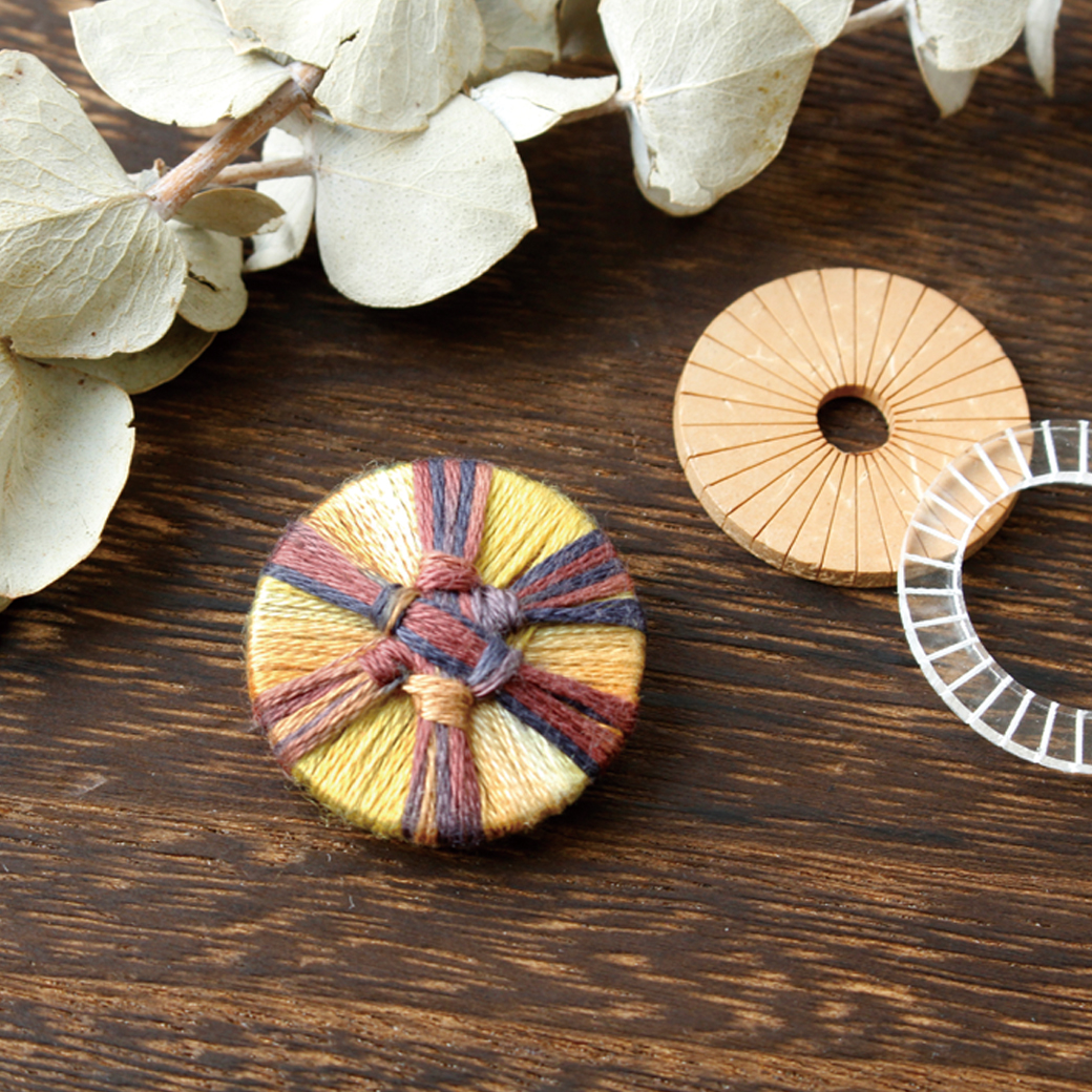 かぎ針付タティングシャトルで作る シンプルな糸ボタンのブローチ手作りレシピクロバー株式会社。