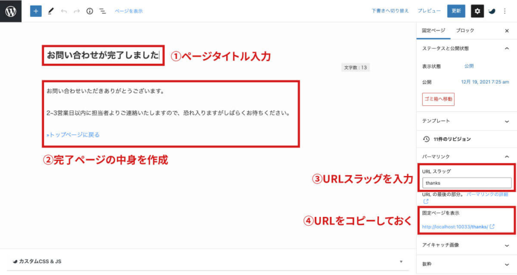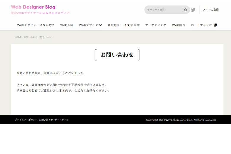 送信完了画面として別ページに遷移させる方法 - WordPressプラグインで問い合わせフォームを実装しよう。