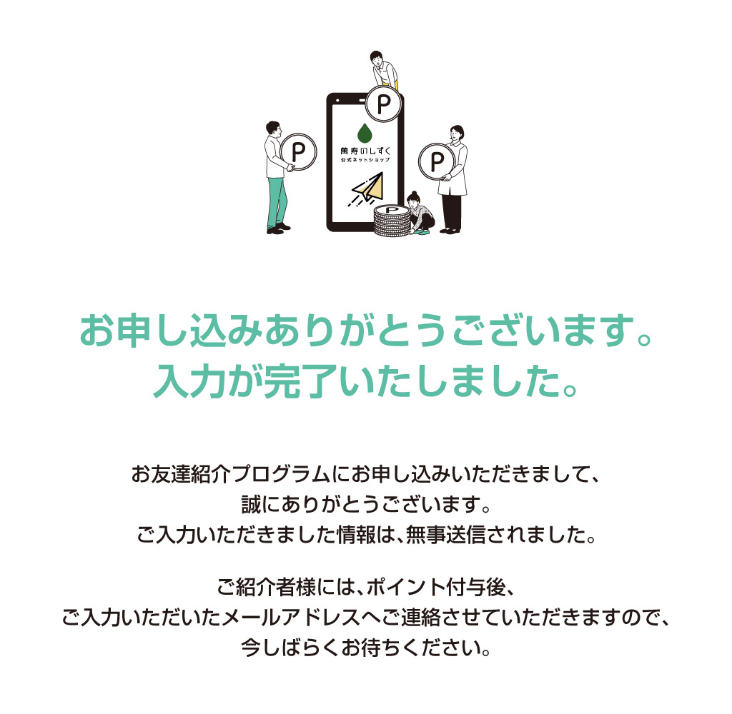 送信完了画面ーお友達紹介フォーム萬寿のしずく公式ネットショップ。