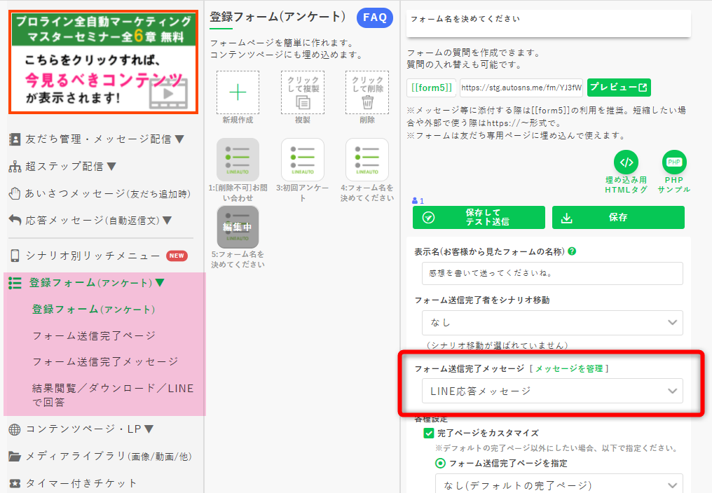 フォーム送信完了メッセージとは? - プロラインフリー オンラインマニュアル。
