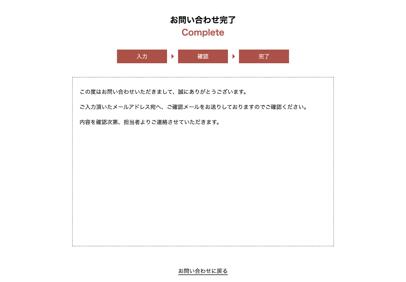 完了画面の作成ゼロから作るお問い合わせフォーム-Gmailを使ったメール送信機能と個人情報を守るセキュリティ対策。