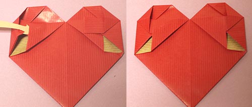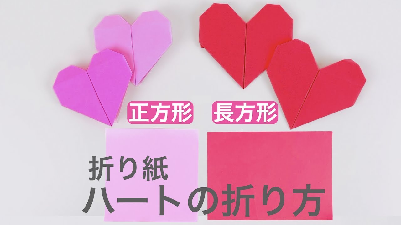 折り紙でハートの折り方 正方形と長方形の紙でハートを折ってみた。