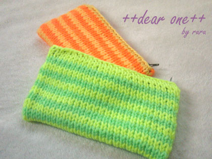毛糸 de ポーチ ~蛍光アクリルのシンプルボーダー柄~しあわせニット。
