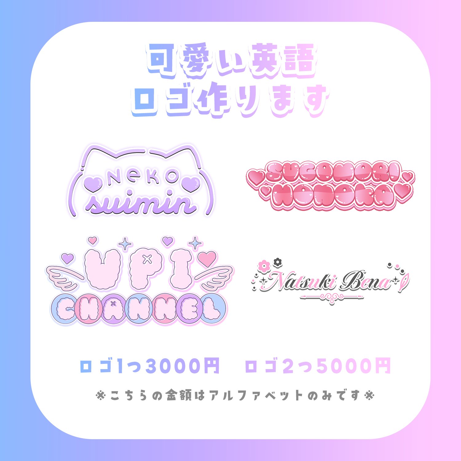usagi@可愛いものクリエイター on X: "📢通常ロゴは5500円ご依頼受け付けていますが英語ロゴは3000円で受け付けてます!ご興味ある方はDMでどうぞ🐰vtubervtuber素材配信素材 https:t.co VnR2JkNIQN"X。