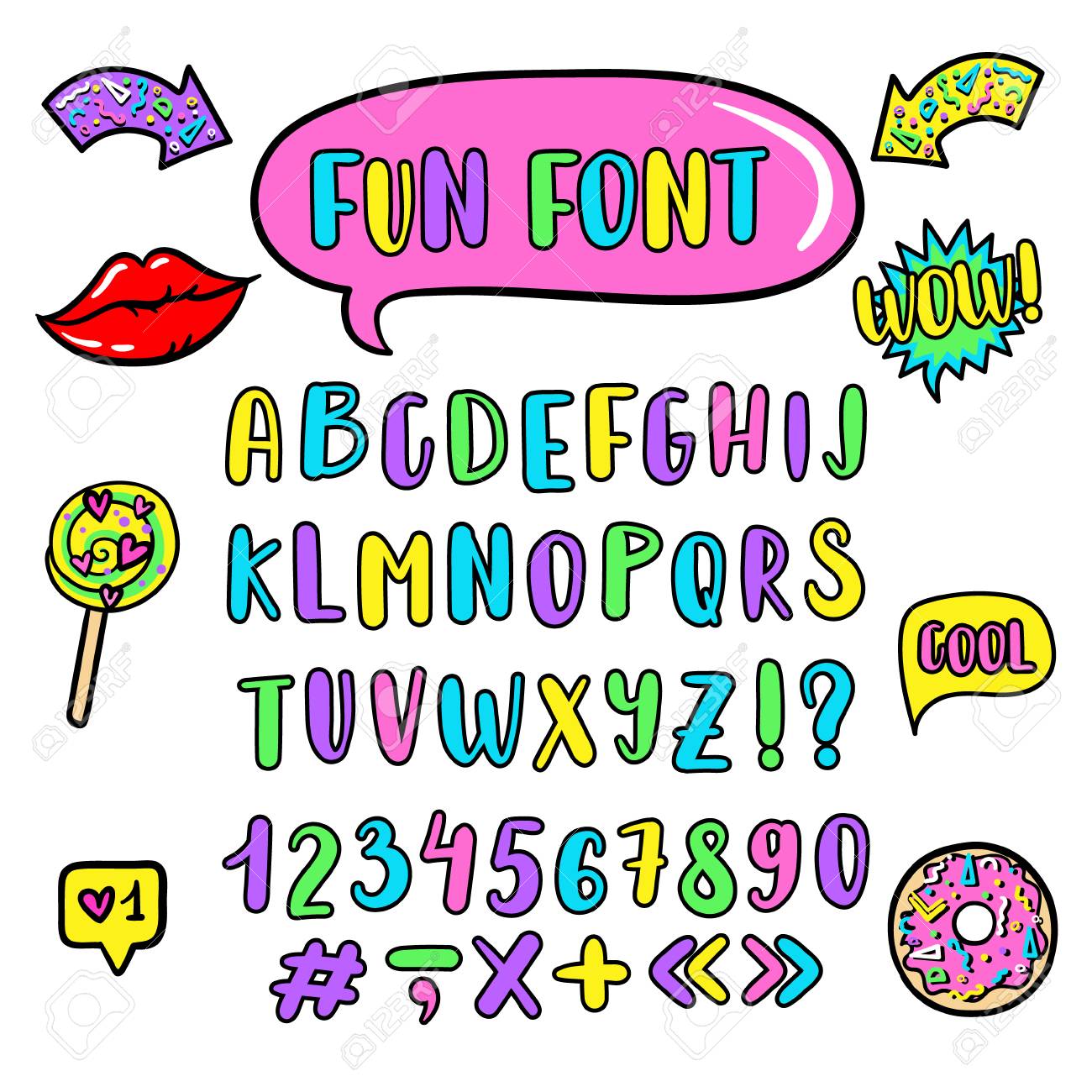 カラフルなかわいい英語のフォントとアルファベット。アルファベットのベクター画像セット。」のベクター画像素材 ロイヤリティフリー1151824463Shutterstock。