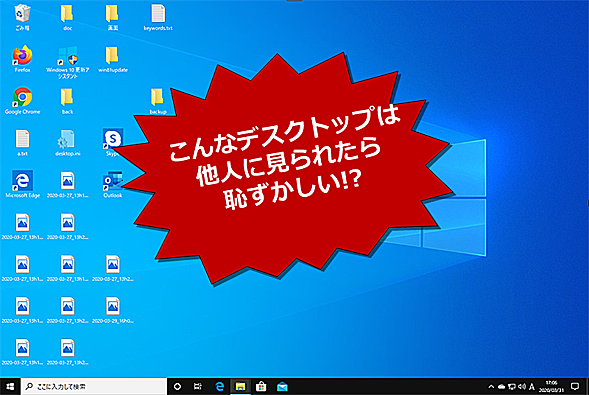 Windows 10 プレゼンで恥をかかない、散らかったデスクトップアイコンの一括非表示:Tech TIPS - @IT。