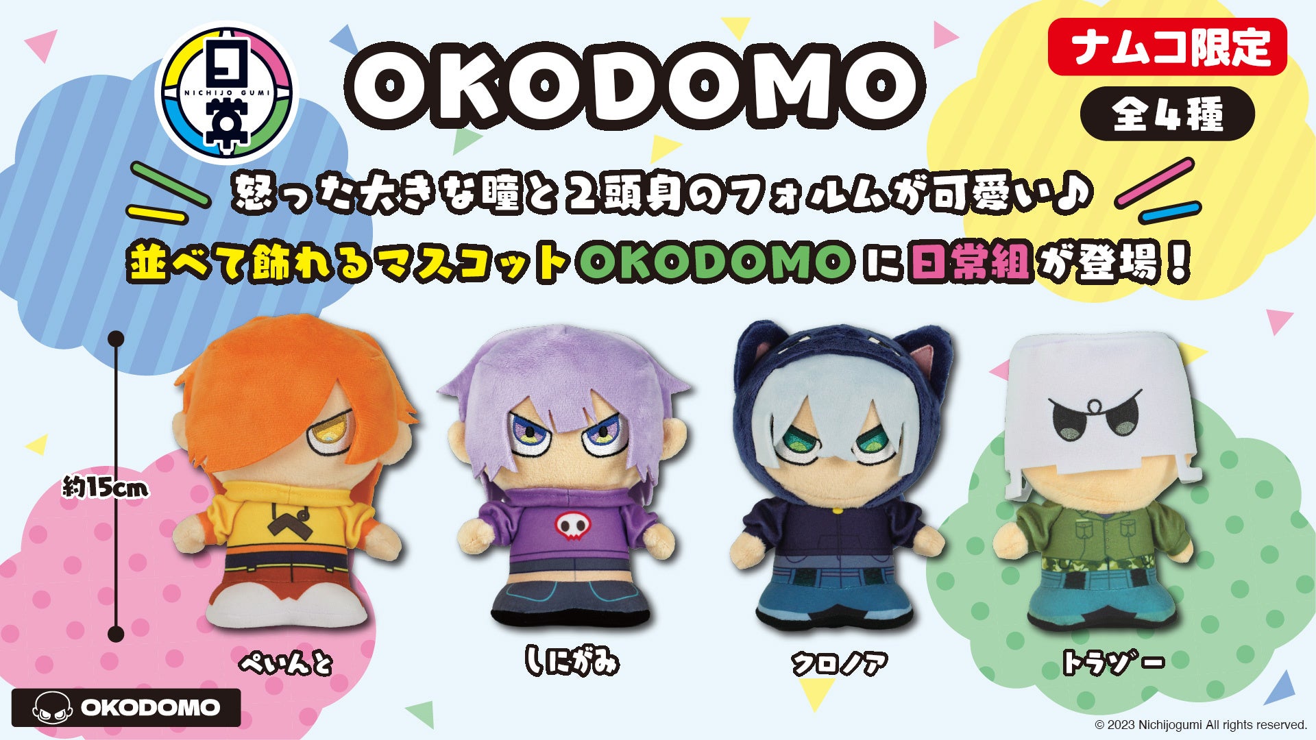 eStreamより、人気ゲーム実況グループ「日常組」のオリジナルプライズ商品が全国のナムコ店舗・ネットクレーンモール「とるモ」にて2023年10月20日より順次展開決定!株式会社CyberZのプレスリリース。