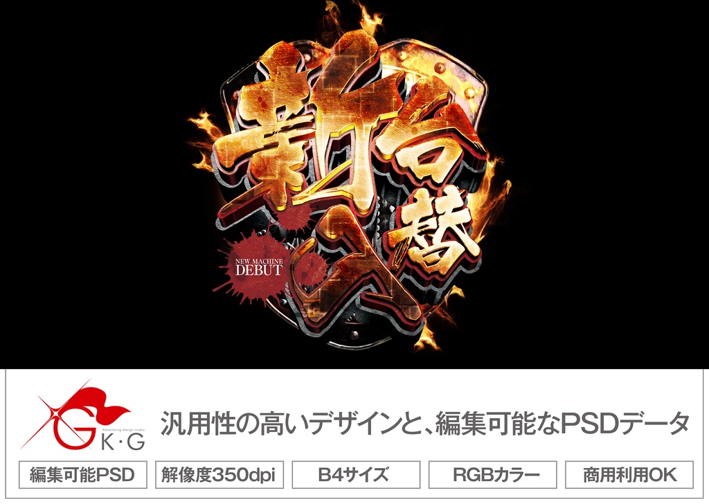 パチンコ 新台入替_バトル系_筆文字 広告素材-パチンコ広告DL素材 DESIGN STUDIO KG - BOOTH。