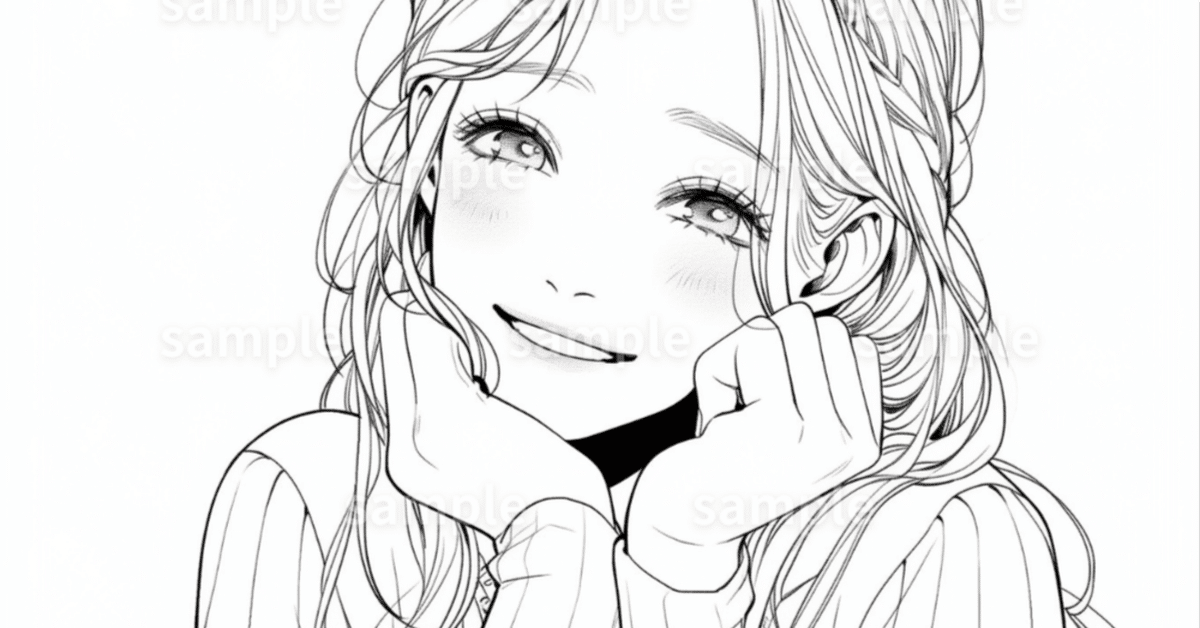 白黒の女の子イラスト」フリー素材3枚セットSNSアイコン・お子様の塗り絵に・印刷OK・イメージ画像にFREEFREE”美容・女性専門”素材サイト。