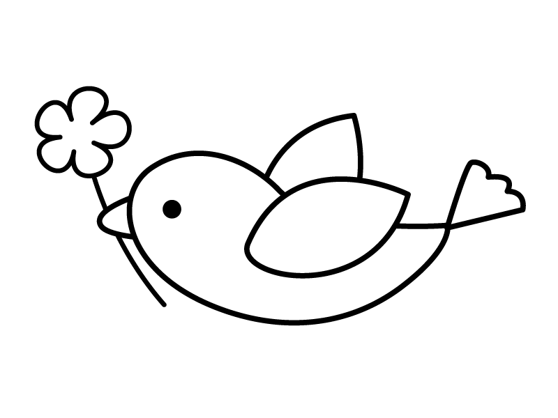 花と小鳥の白黒イラストかわいい無料の白黒イラスト モノぽっと。