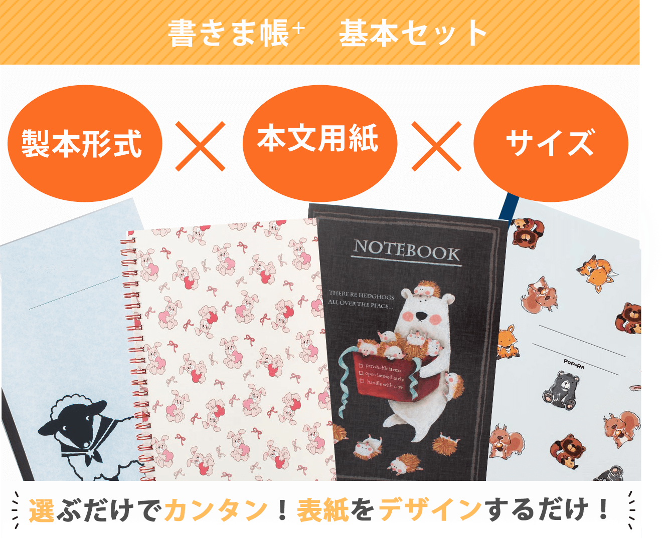 簡単にオーダーメイドのオリジナルノートがつくれる「書きま帳+基本セット」オリジナルノートの作成・印刷なら 書きま帳+。