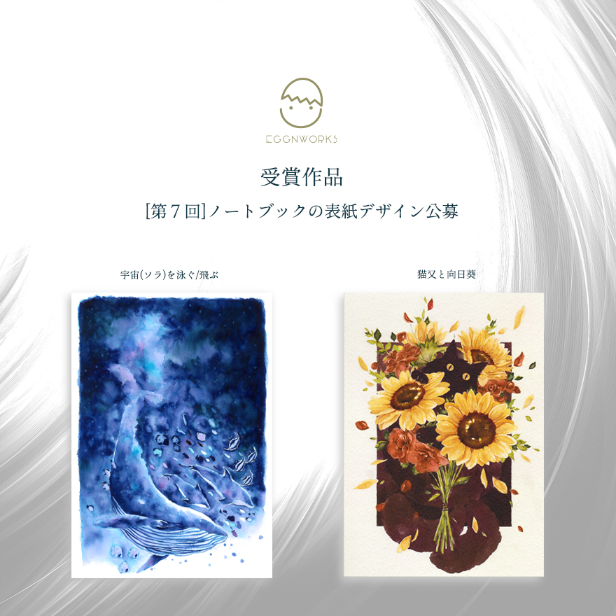 新製品 一般公募で選ばれたデザインをノートの表紙に採用した「EggnWorksノートブック」。