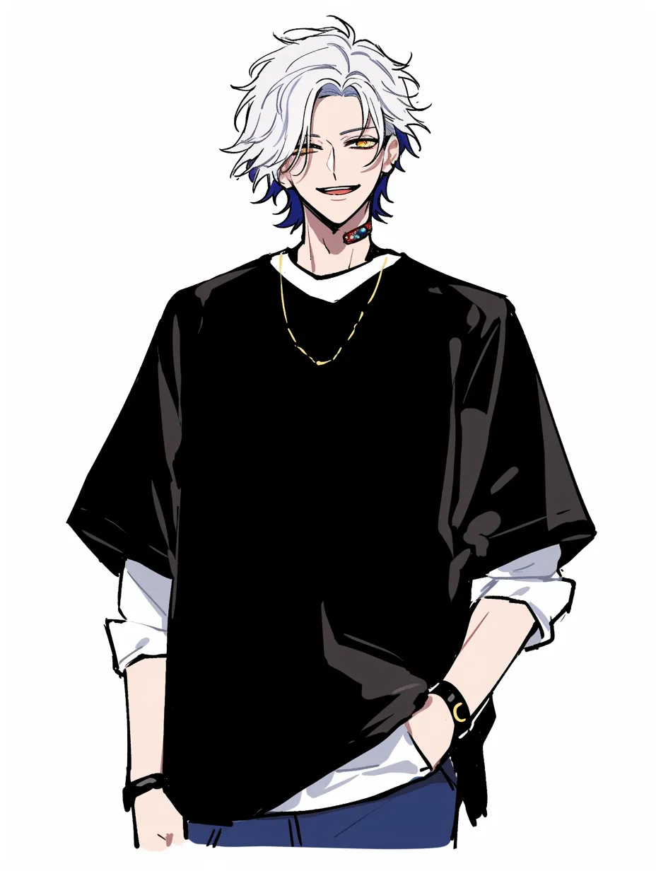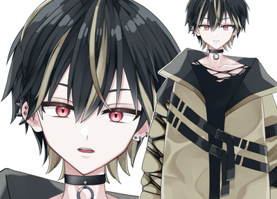 神話生物イメージ立ち絵 オッドアイに黒髪白メッシュの青年 差分10種- 平行移動 - BOOTH。
