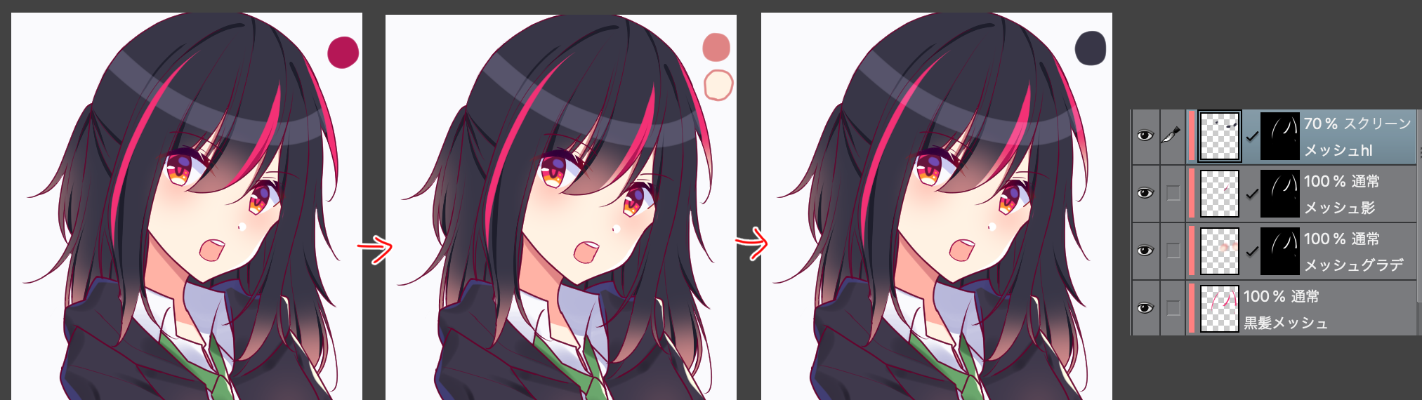髪のメッシュを塗る by kawashita あめ- お絵かきのコツCLIP STUDIO TIPS。