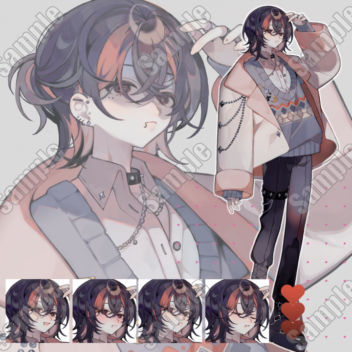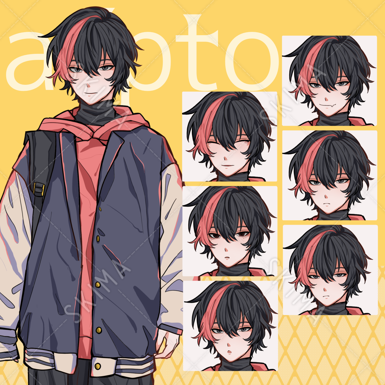 フリー素材 黒髪赤メッシュ三白眼青年 立ち絵素材 - 出鱈目支部 - BOOTH。