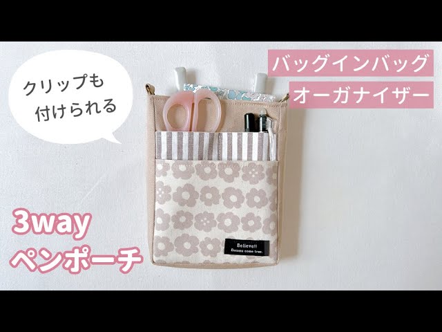 3WAYペンポーチの作り方 オーガナイザー ミニバッグインバッグにもナースグッズ。