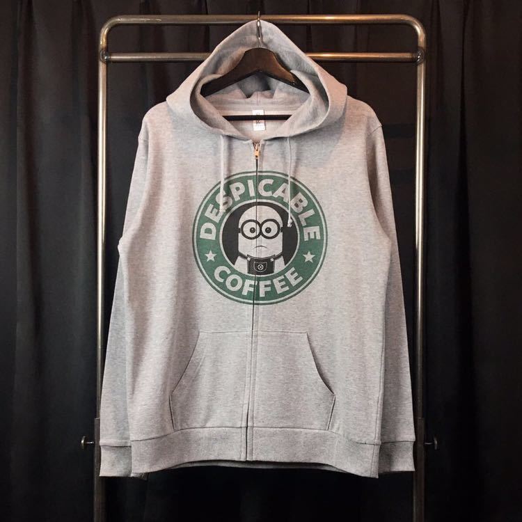新品 大きい オーバーサイズ XXL XXXL 対応 ミニオン 怪盗グルー USJ スタバロゴ パロディ ビッグ ジップアップ。