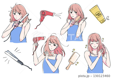 ドライヤーを使う女性 イラスト素材1041538- フォトライブラリ。