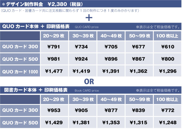 図書カード価格表 - クオカード・図書カード印刷の「QUON」小ロット 少ない枚数がお得。