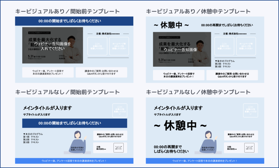 ウェビナー用スライドの作り方!開始前・休憩中の場面別に解説 テンプレート付。