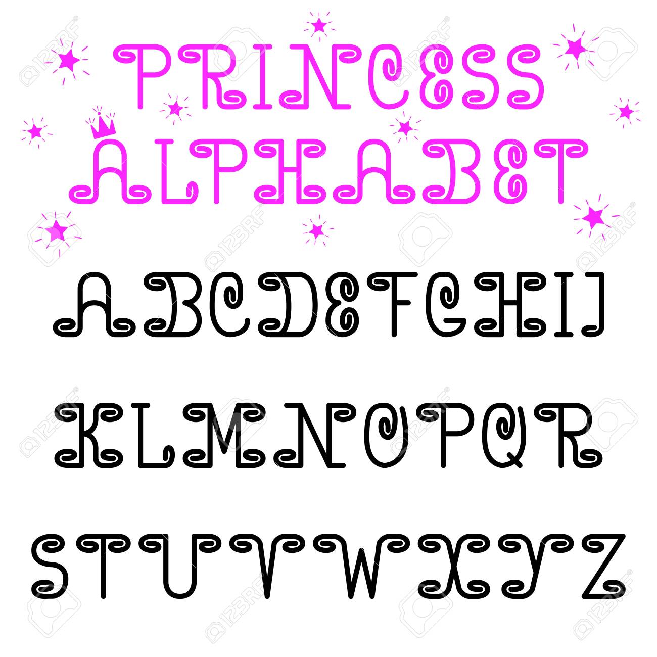 プリンセスベクトルアルファベットフォント。カール英語の文字でかわいい。女の子、子供のために、母親のために、カード、アルバムのために、のイラスト素材・ベクターImage 132762358。