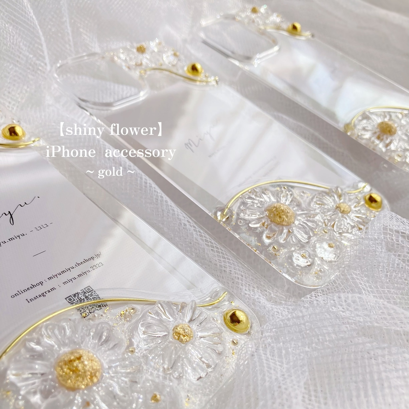 𝐈𝐯𝐲 𝐟𝐥𝐨𝐰𝐞𝐫 𝐢𝐩𝐡𝐨𝐧𝐞 𝐜𝐚𝐬𝐞 ✿ 透明なお花にゴールドの葉を 合わせた大人可愛いアイテム🪡凹凸が少ないのもオススメポイントのひとつ。 店舗でとても人気のデザインです🫶iPhoneケースアイフォンケーススマホケーススマホカバースマホケース。
