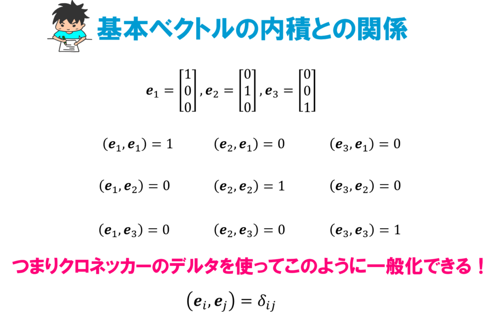 クロネッカーのデルタについてわかりやすく解説する線形代数を宇宙一わかりやすく解説してみるサイト。