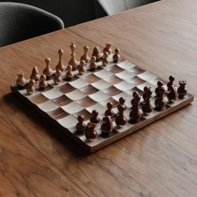 オブジェ ウォブル チェスセット 木製チェス インテリア 高級 ボードゲーム ウォルナット プレゼント ギフト おもちゃ 駒 セット 飾る 飾り遊べる 雑貨 玩具 ゲーム 頭脳戦 脳トレ おしゃれ かわいい 人型。
