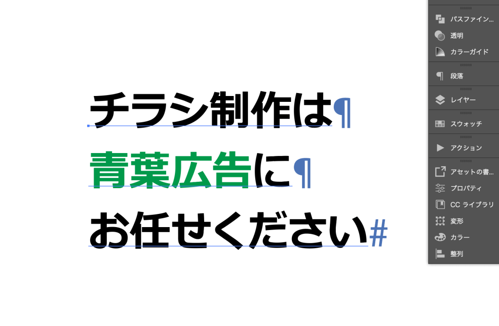 Illustrator テキストの後ろについてる変な記号を消す方法株式会社青葉広告。