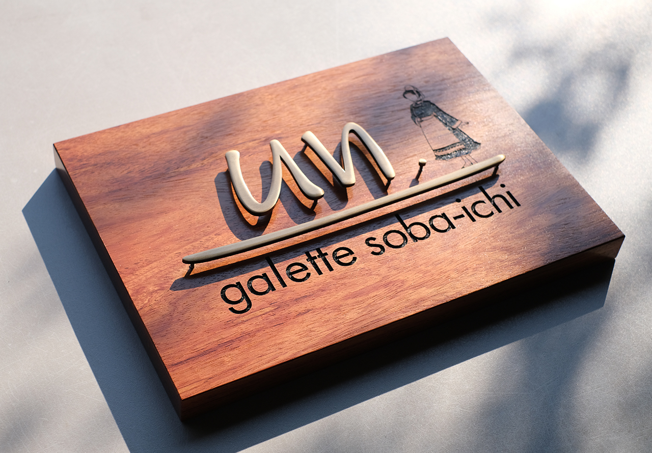 木の看板 真鍮浮き文字 ガレット屋さんの看板ヒロノクラフト表札看板木の看板真鍮浮き文字いぶし仕上げウレタンクリア彫刻ロゴ入り口古民家エントランスシンボル素敵な表札がある暮らし家族のシンボルhironocraftnameplatesignboard。