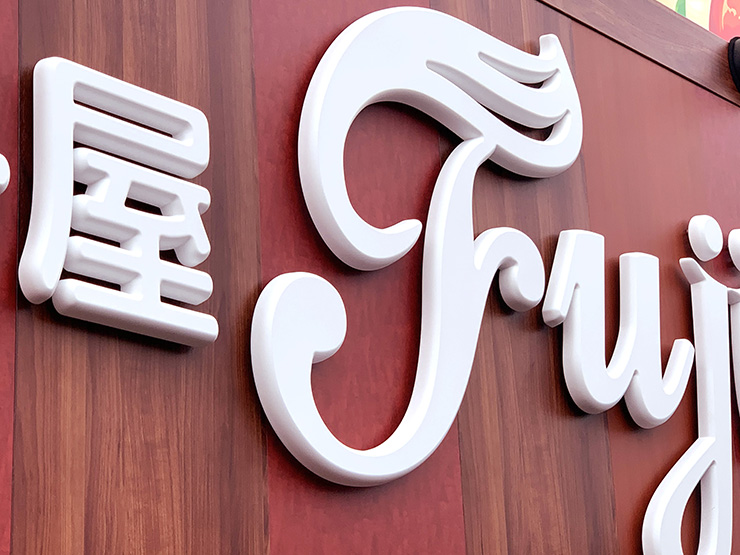筆文字ロゴを立体造形にしたインパクトある文字看板-施工実績名古屋・愛知の看板制作のイチゴスタジオ。