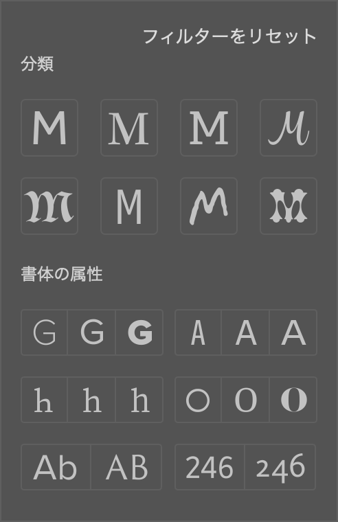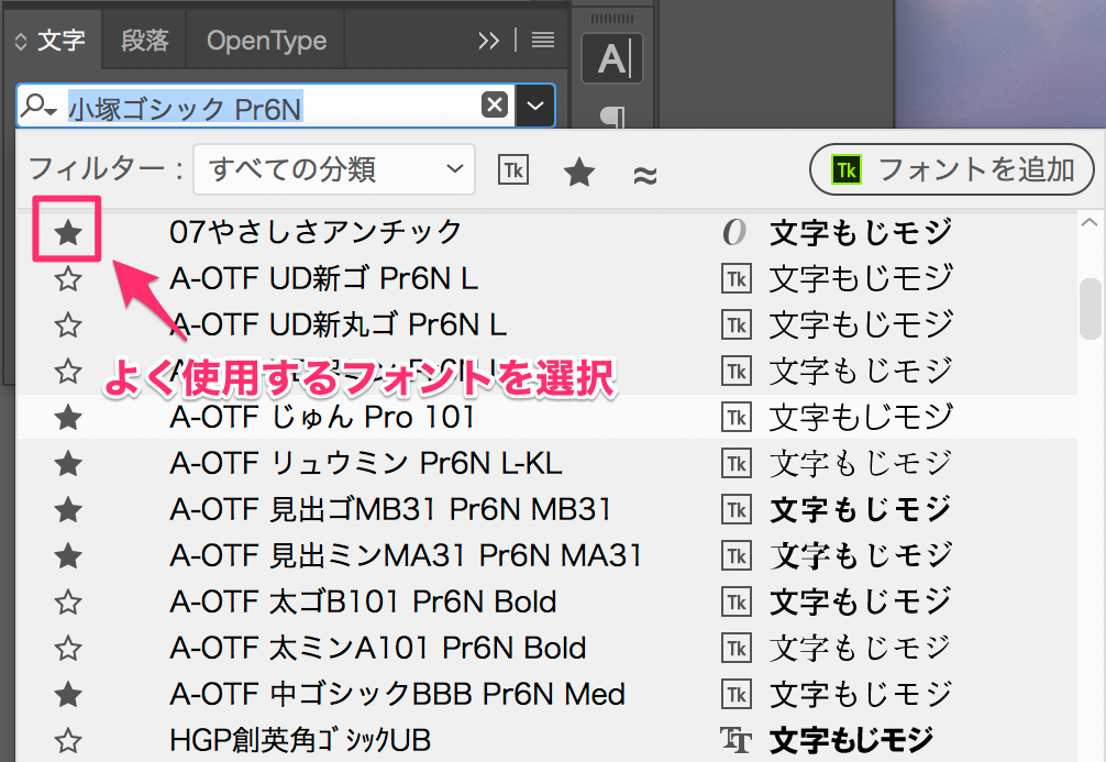 よく使うフォントは「お気に入り」フィルターで管理するDTP Transit 別館。