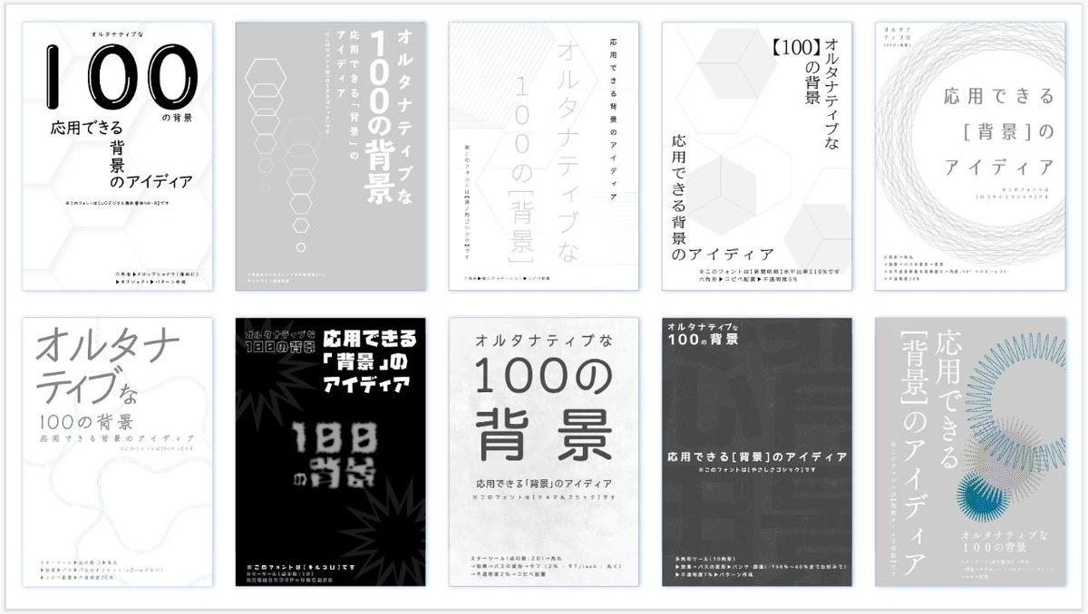 イラレ 10種のフォントと、シンプルな背景のアイディア 多角形- Books & design & illustration ia19200102portfolio。