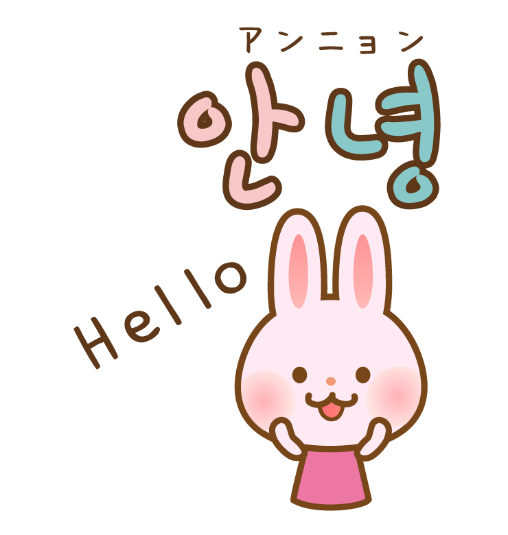 かわいいうさぎとハングル文字 アンニョン のイラスト無料のフリー素材 イラストエイト。