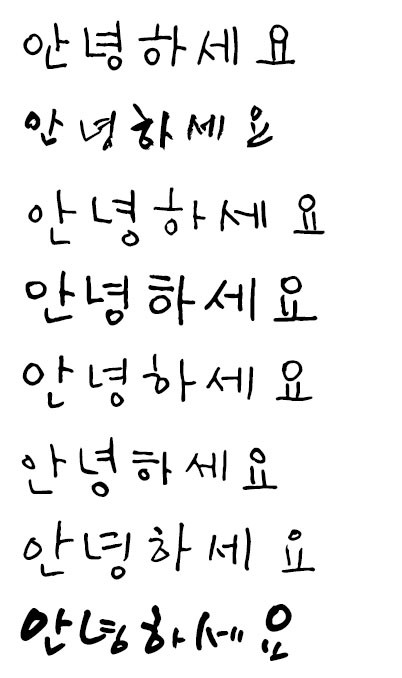 無料ハングルフォント 1 筆記体、真面目、可愛い系 - ハングル変換ツール・ファイル。