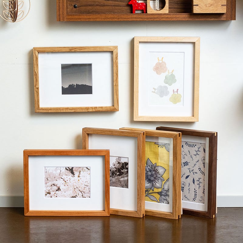 木製 フォトフレーム ましかく、2L判、L判、ハガキ ポストカード の写真台紙の中から1枚選べ。