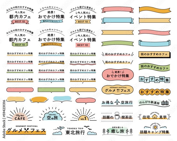 見出しタイトルフレームセット イラスト 飾り 装飾 枠 あしらい バナー デザイン リボン 吹き出し の Stock ベクターAdobeStock。