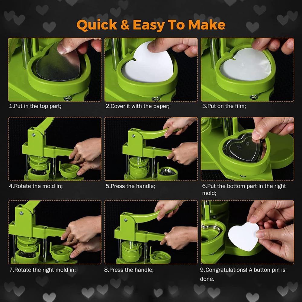缶バッジ DIY ピンボタン製造機、インストール不要のハートボタンメーカープレス機 オリジナルエンブレム作成 Amazon.co.jp: 缶バッジボタンメーカーマシン複数のサイズ100個ピンバッジパーツピンプレスボタンメーカー帽子用 オリジナルエンブレム作成 Green: Toys &Games。