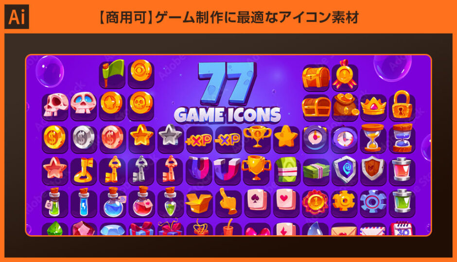 商用可 ゲームUI制作に最適なアイコン素材 IllustratorS.Design.Labo。