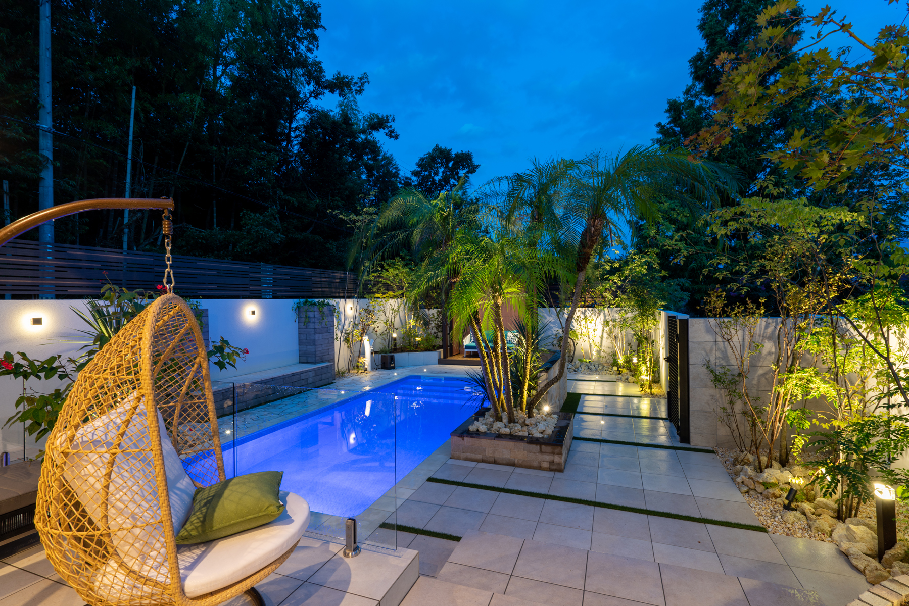 庭にプールがある夢の暮らしを現実に!我が家の庭が美しいリゾートホテルのような空間にエクステリアリフォーム事例No.2ウチソトスタイル。