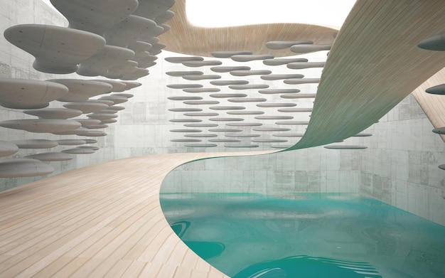 プールは木製で、曲線的なデザインが施されています。Premium写真。