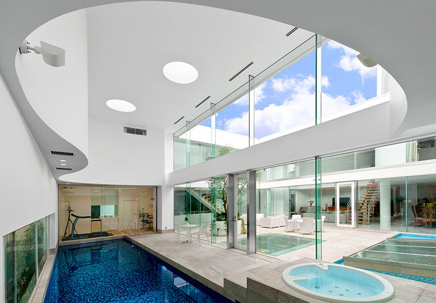 プール 室内プール 季節や天候を気にせずに楽しめる、室内プールデザインをご紹介します。自宅に設置された室内プール には、リラックスや運動の場としての魅力だけでなく、防災面でのメリットも。地震などの災害時に長期間断水が続いた際、プールの水を生活用水として。