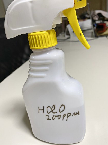 100均で見つけた黒い容器のスプレーボトルに次亜塩素酸水を入れる。 – KEISUI ART STUDIO。