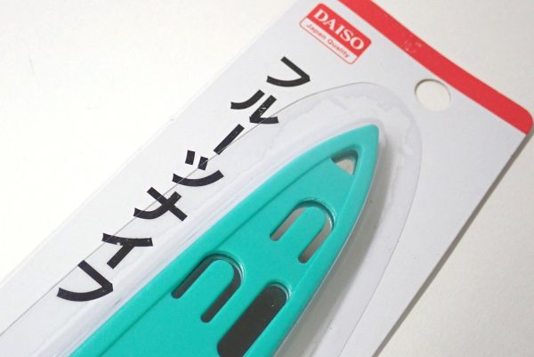 箱出し状態の切れ味は今一つかな、ダイソーのサヤ付きフルーツナイフ @100均 セリア。