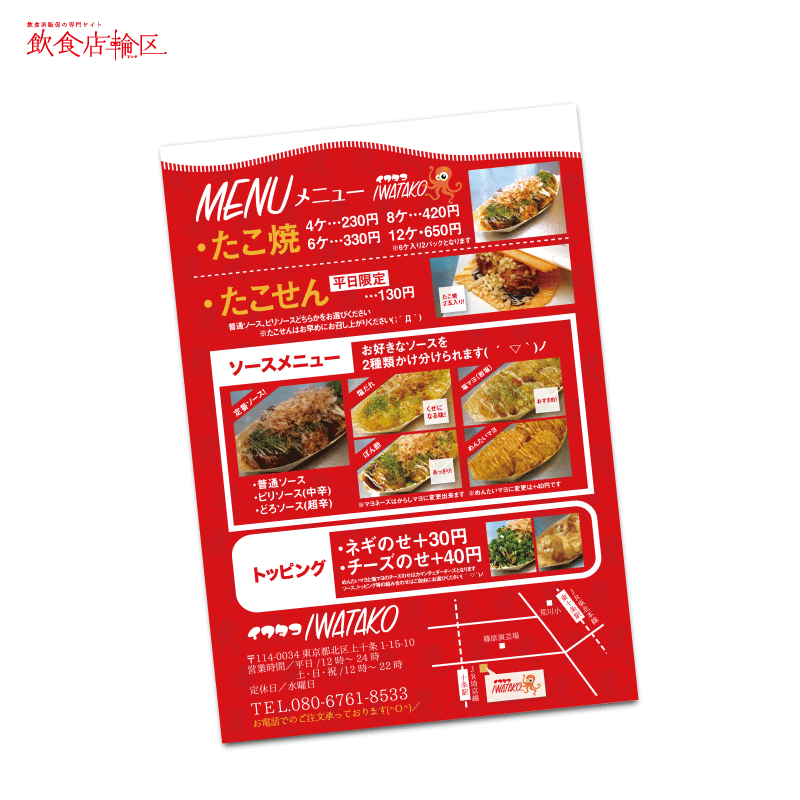 たこ焼き店 メニューポスターデザイン制作飲食店輪区。