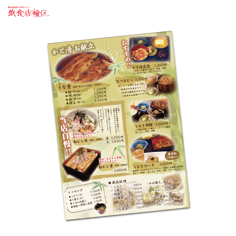 鰻屋 メニュー告知ポスター デザイン制作飲食店輪区。