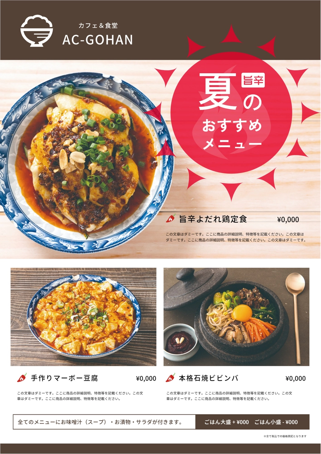 夏におすすめのメニュー表の無料ポスターテンプレート 12842 - デザインAC。