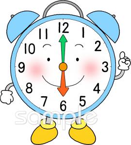 時計 6時イラストなら、小学校・幼稚園向け・保育園向けのかわいい無料イラストお試しフリー素材 カット がいっぱいの安心サイトへどうぞ。