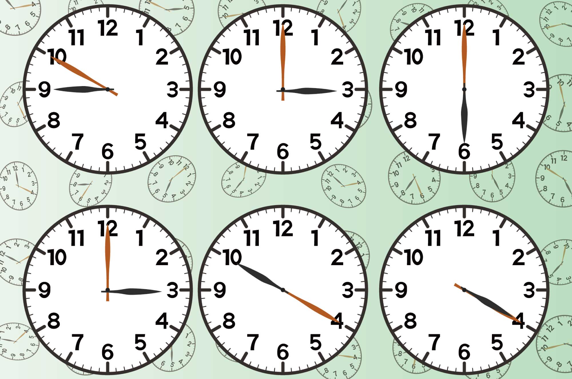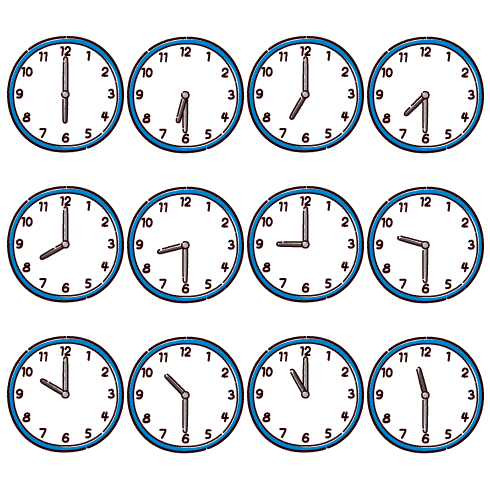 時計のイラスト 6時〜11時半12カット- イラストくん。