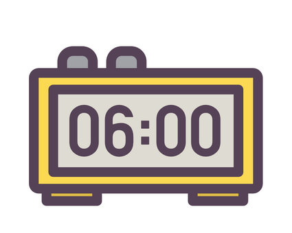 落書き風シンプルなアイコン、レトロな目覚まし時計、朝の6時半の電子目覚まし時計、起きる時間、朝、白い背景、6:30、分離型」のイラスト素材2284596139Shutterstock。